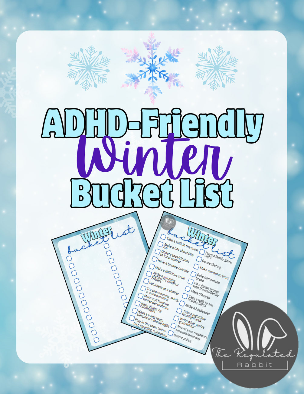 ADHD-Friendly Bucket List filled with winter-themed activities to help boost your dopamine and oxytocin, while engaging your 5 senses. Blank template included for you to create your own bucket list!